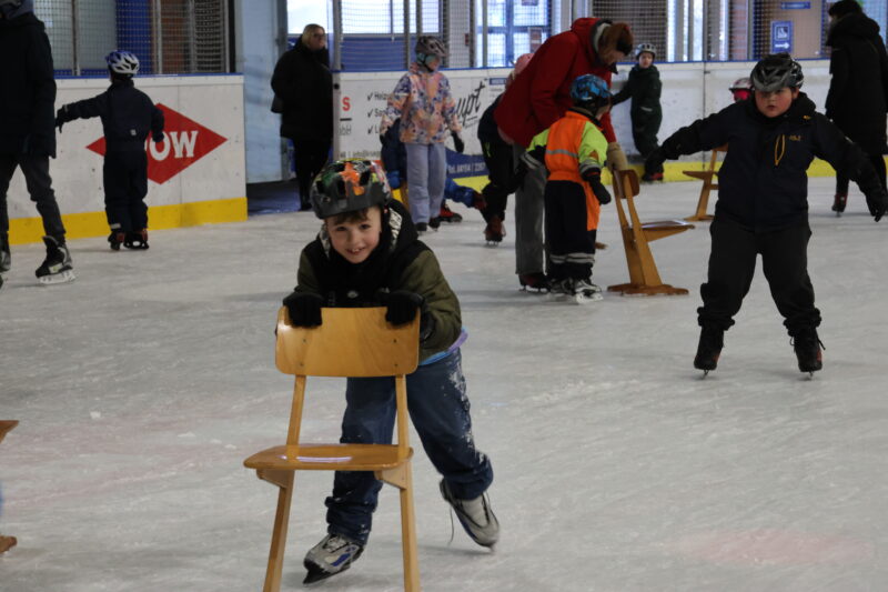 Nachdem alle mit Leih-Schlittschuhen ausgestattet waren, ging es auch schon los. Gemeinsam mit den Lehrerinnen und zahlreichen helfenden Eltern traute sich die Kinder auf die spiegelglatte Fläche. Für die Eislauf-Neulinge gab es einen clever abgetrennten Bereich: Hier konnten sie sich an Stühlen festhalten und in ihrem eigenen Tempo erste, sichere Erfahrungen auf dem Eis sammeln. Diese Unterstützung wurde dankbar angenommen und schon bald sah man viele stolze Gesichter, die ihre ersten Meter allein meisterten.